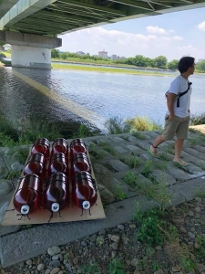 いかだの材料に選んだのはビールの「ケグ」。主にクラフトビールの輸入に使われる巨大な樹脂製のボトルです。何もなければゴミとして捨てられていただけのケグを、ビアセラー東京、スピカルボといった狛江市内のクラフトビールショップから譲り受けました。