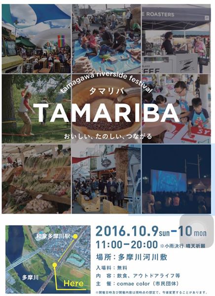多摩川を楽しみ尽くしちゃおう!という多摩川河川敷フェス「タマリバ」10月9日〜10日に開催定しました。飲食、音楽、ワークショップなど、川と親しめるアクティビティが盛り沢山です。